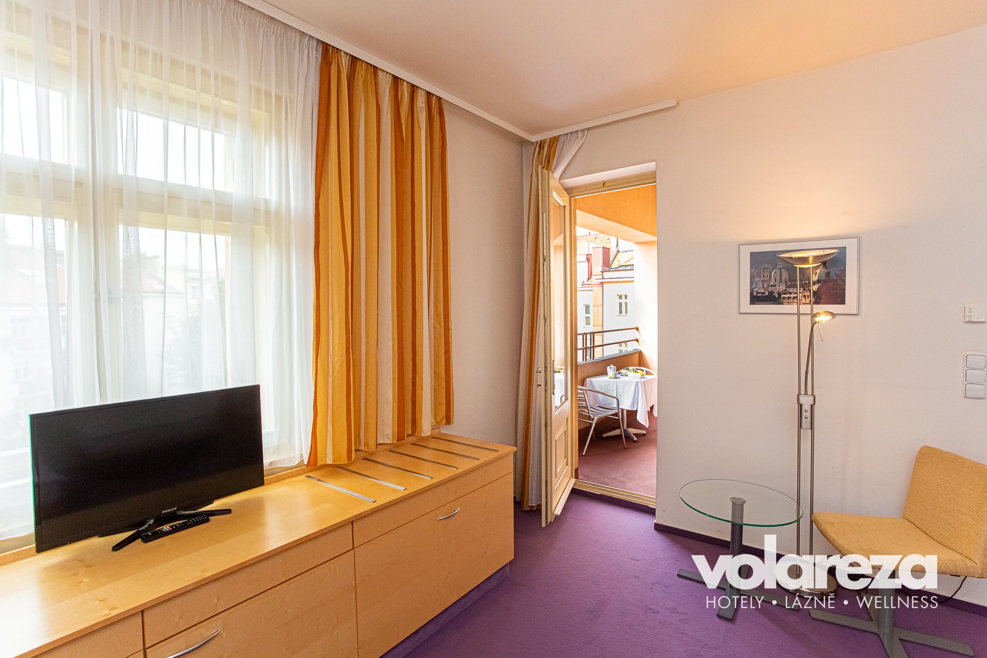 Apartmány nabízí maximální pohodlí pro náročného hosta nebo výjimečné události. Ideální jsou také pro rodinné pobyty. Jejich součástí je samostatný obývací pokoj s pohodlným posezením a možností 1 - 2 přistýlek. K vybavení patří rychlovarný set s čajovým a kávovým servisem, praktická chladnička, vana nebo sprcha, pantofle, případně župan na vyžádání. Naší novinkou je fair trade kolumbijská káva a belgická čokoláda, kterou si můžete vychutnat přímo v pohodlí Vašeho pokoje.