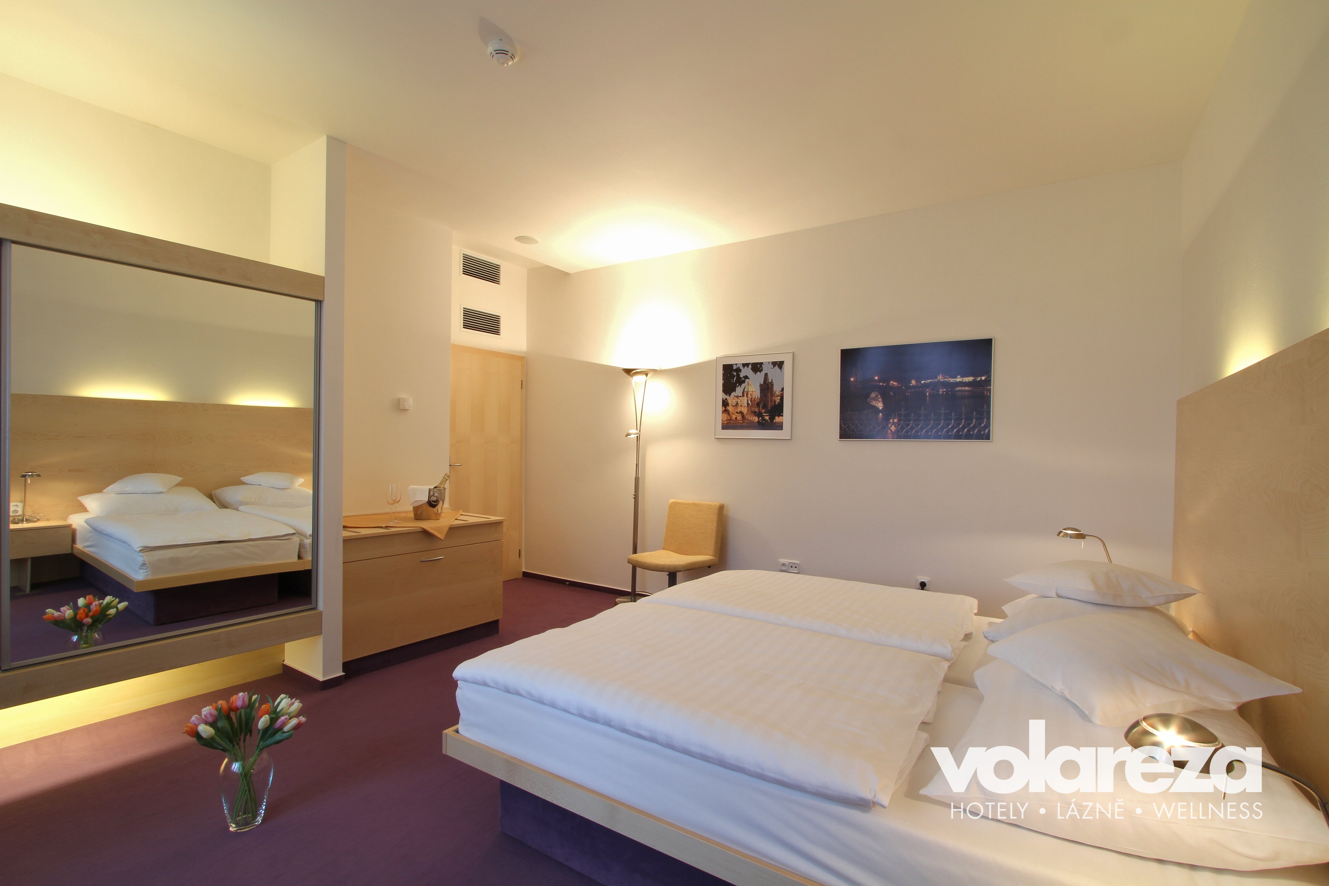 K doplňkovým placeným službám, které si můžete objednat on-line k ceně ubytování, patří láhev Bohemia sektu či kvalitního vína na pokoj nebo naplnění minibaru.