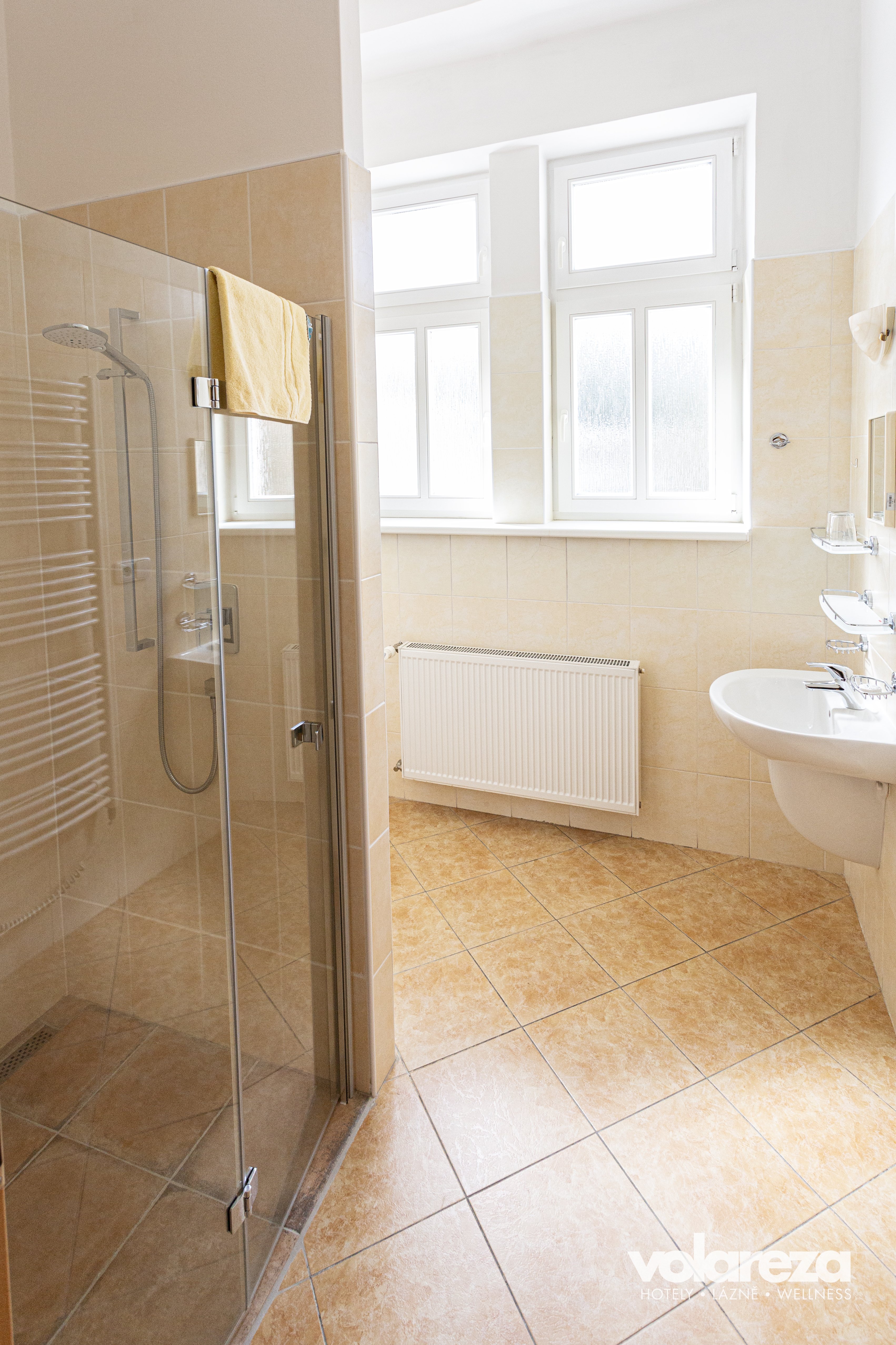 Každý byt má vlastní koupelnu, jejíž samozřejmostí je bezbariérový sprchový kout, WC a přívod pro napojení pračky. Nezbytnou součástí předsíně jsou skříně a botník. Každý byt je vybaven telefonem.