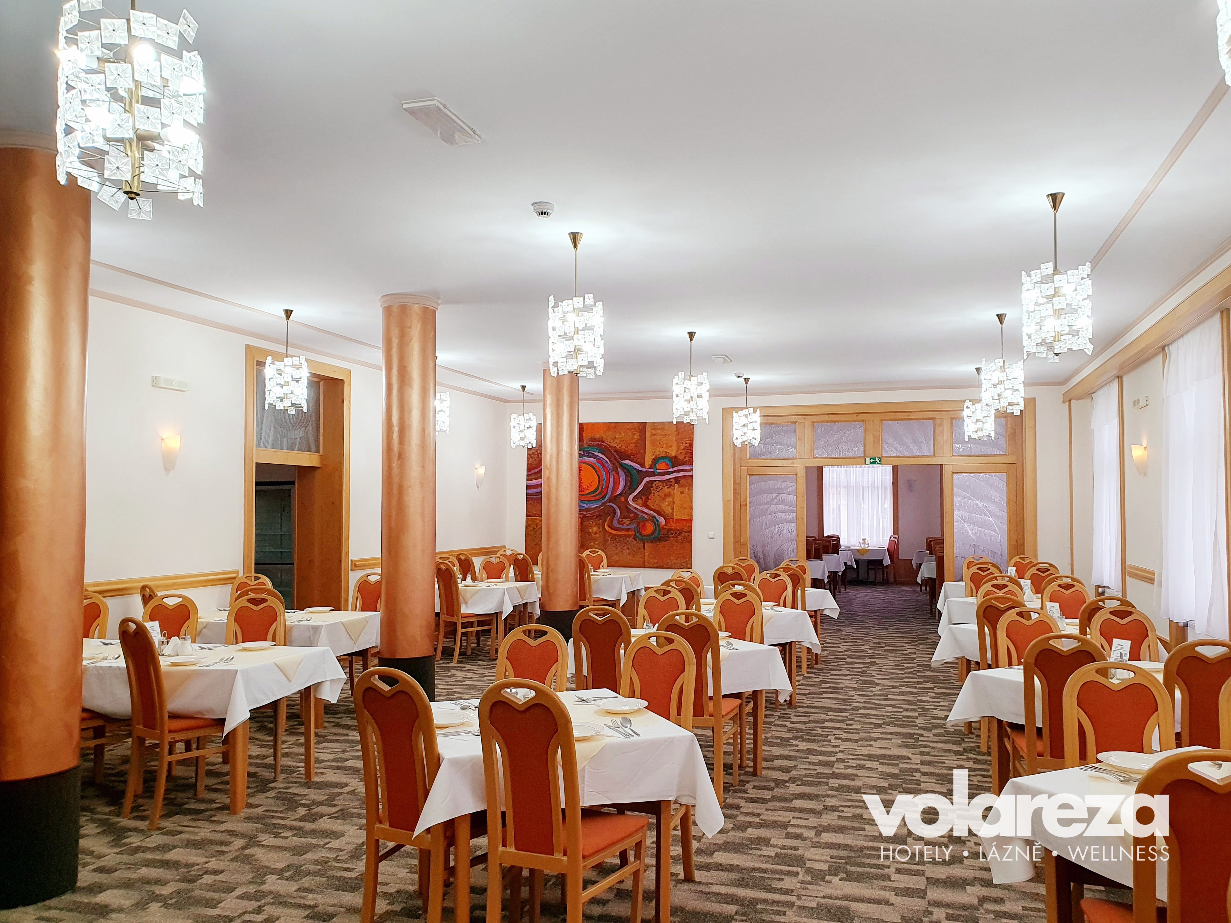 Ve 3 restauračních jídelnách je k dispozici 150 míst, takže není nutno stravovat klienty na směny. V hotelové kavárně je možné zakoupení drobného občerstvení. Kavárna má kapacitu 14 míst a její provozní doba je 06:00 – 22:00 hodin. Všechny stravovací prostory jsou nekuřácké. Zákaz kouření se vztahuje i na všechny formy elektronických cigaret. Děkujeme za respektování.