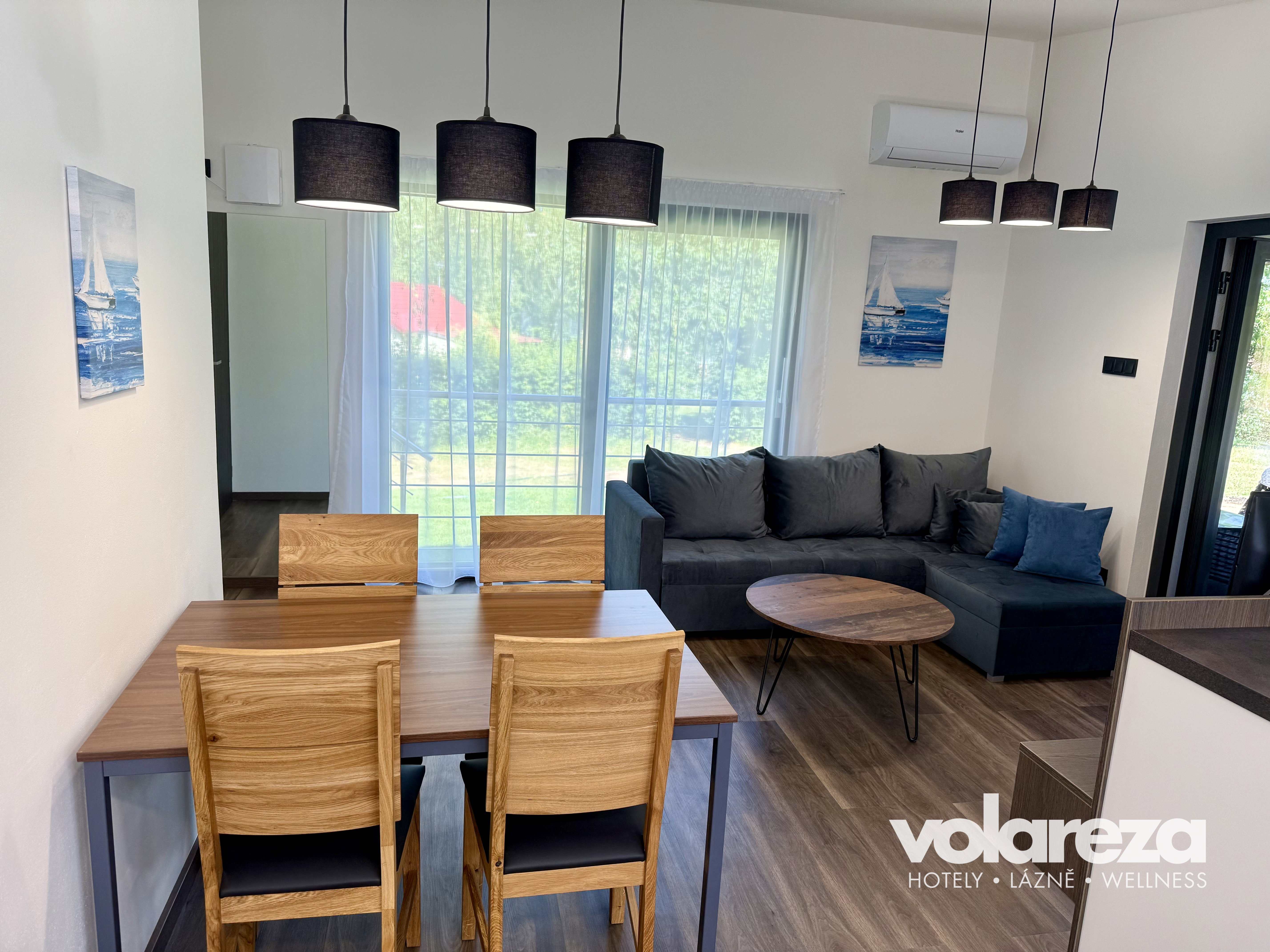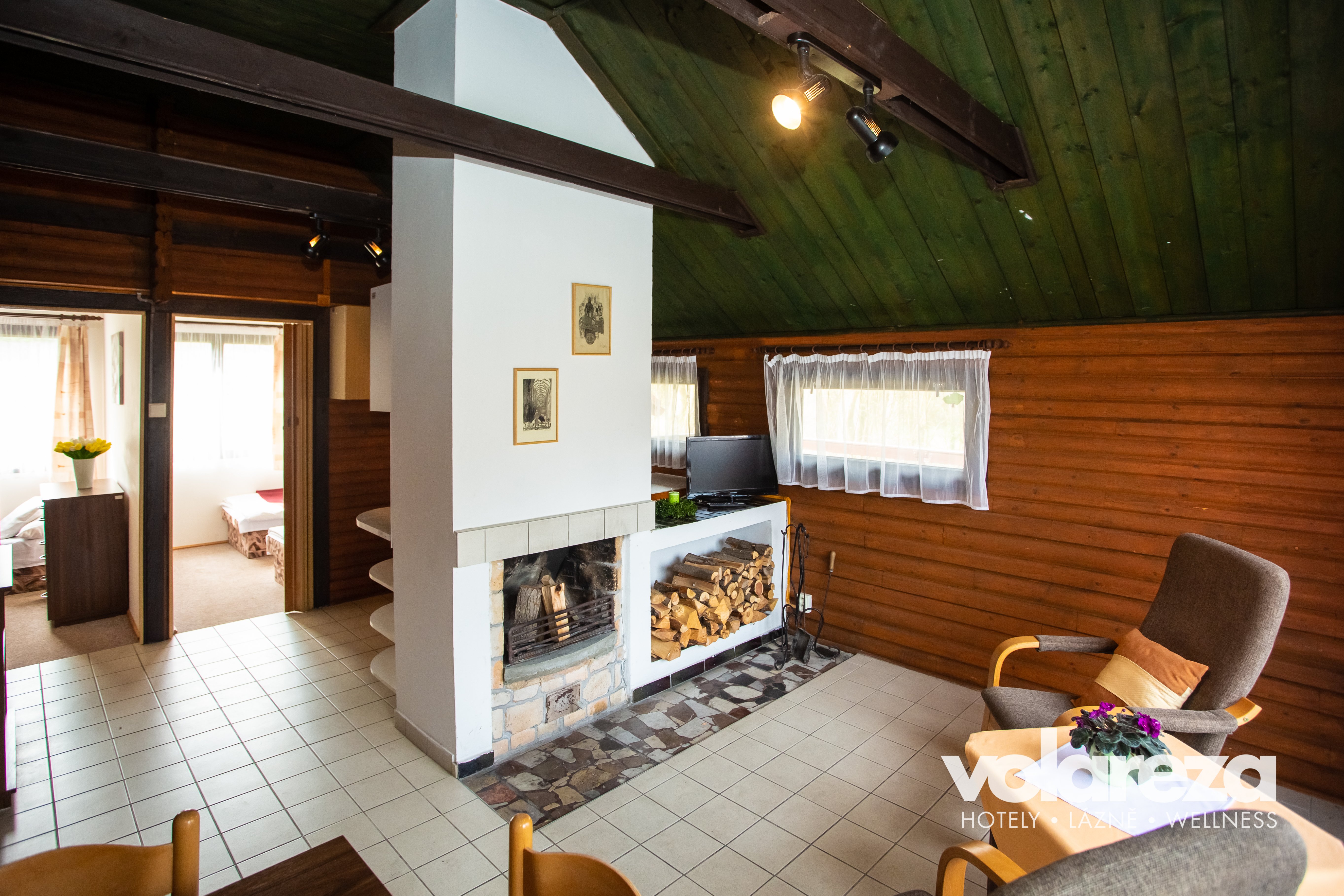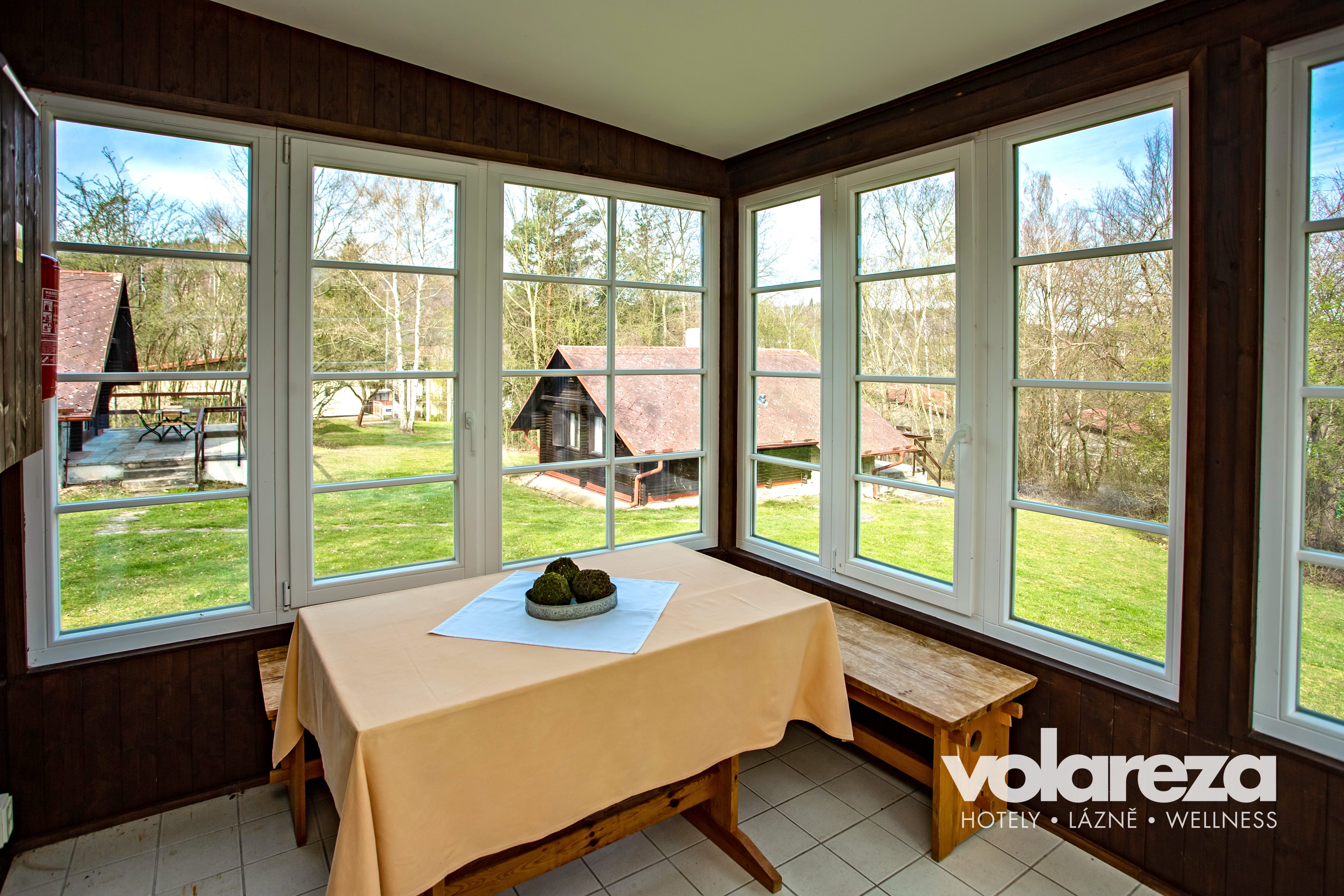 Chaty se nacházejí v uzavřeném areálu s maximální vzdáleností 300 m od hotelu a hosté tak mohou využívat bohaté wellness a sportovní zázemí zařízení včetně jeho gastro služeb. Ani ošklivého počasí se při pobytu v chatách bát nemusíte, chatky jsou vytápěny přímotopy. Nedílnou součástí ceny ubytování v chatkách je snídaně formou teplého a studeného bufetu a v případě zakoupení týdenního pobytu v hlavní sezoně máte rovněž v ceně vstup do hotelového aquacentra (2x za pobyt). Samozřejmostí je ložní prádlo a ručníky, které vyměňujeme 2x za pobyt. Parkování vozidla je možné u chaty nebo na centrální odstavné ploše zařízení.